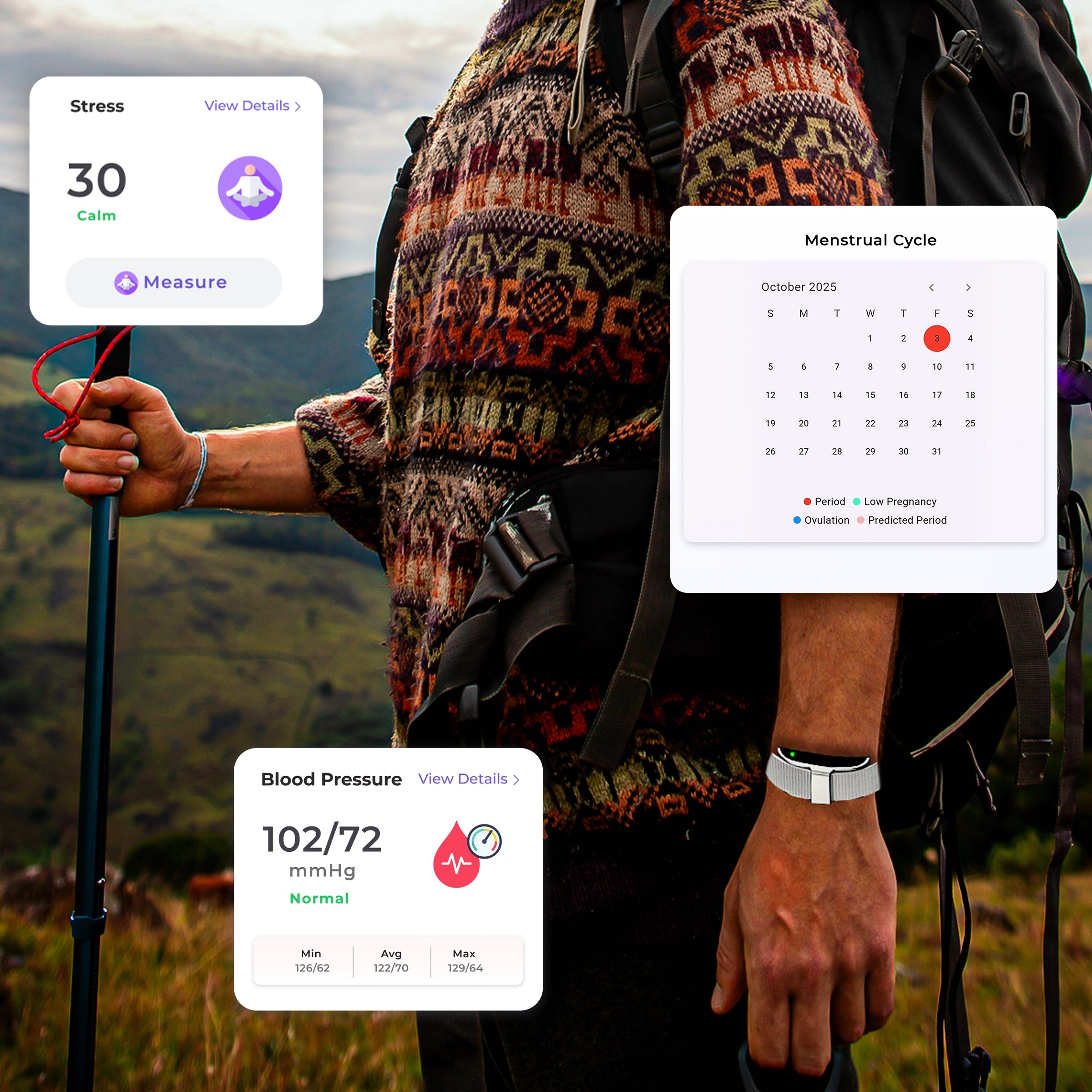 24/7 Stress Trends & Daily Wellness Reports.Track your stress patterns, spikes, and recovery windows across days or weeks with a full health dashboard that visualizes your mental and physiological balance.