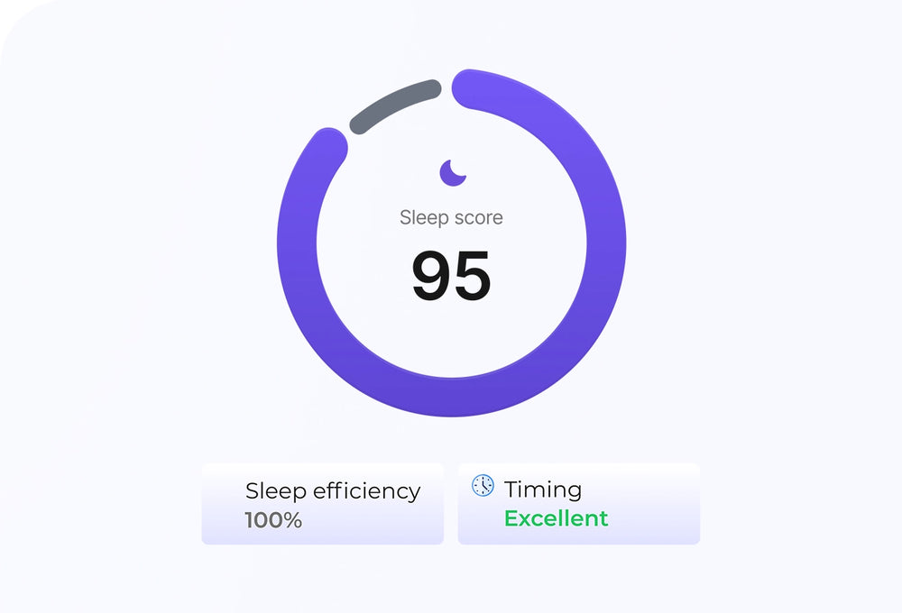 A detailed sleep score graph helps you understand your sleep habits and how long you actually rest each night. It’s designed to feel effortless tracking your sleep without the sensation of wearing a device.