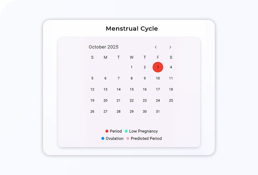 Alti Nova smart ring helps you track your menstrual cycle with insights on your period, ovulation days, and low pregnancy risk phases. Accurately predict your next period and fertility window.